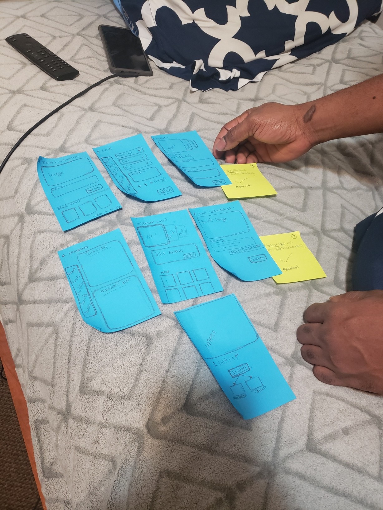 Using the paper prototype, I asked few people to test how usable the plaform would be with just the papers represent the screens. Each paper represent a slide/screen on th platform. This helped in knowing what feature is missing, what can be simplified or changed. I will also got the chance to understand what users would expect whiles using the platform. Each round was tested by 3 seperate individuals.