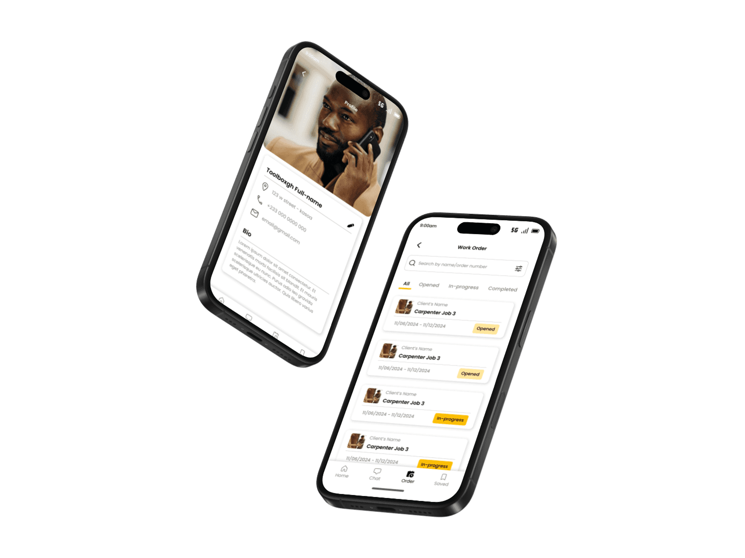 Kwame and Ama connected through a mobile platform designed for skilled workers and homeowners. Ama discovered Kwame’s profile, which featured customer reviews, project photos, and transparent pricing. She contacted him through the platform, and they scheduled a site visit.